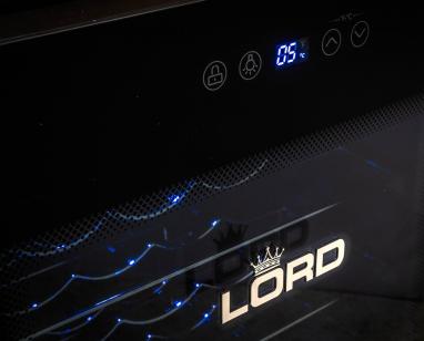 Viduje yra šešios metalinės lentynos. Vidinis LED apšvietimas padės išsirinkti tinkamą buteliuką. Dėl paprasto naudojimo su skaitmeniniu ekranu tinkamos temperatūros nustatymas yra tiesiog paprastas pyragas neatidarius LORD E2.